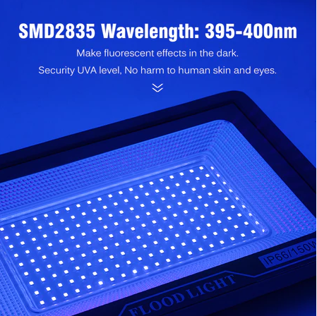 * Wavelength 395nm-400nm, security UVA level, No harm to human skin and eyes. In addition, the blacklight work super cool for UV body paint and other visible fluorescent materials.